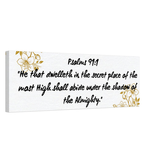 Faith-Based Bible Verse Quote Decor Psalms 91:1 Canvas 12x36″